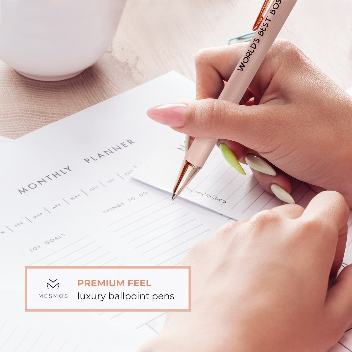 Impress Your Boss with Style: Our sophisticated pen set is the perfect gift to show appreciation and respect. Each pen is elegantly engraved with affirmations like ‘Awesome Boss’, ‘World’s Best Boss’ and ‘Appreciate You Boss’. It’s designed with bosses in mind, making it a thoughtful choice.