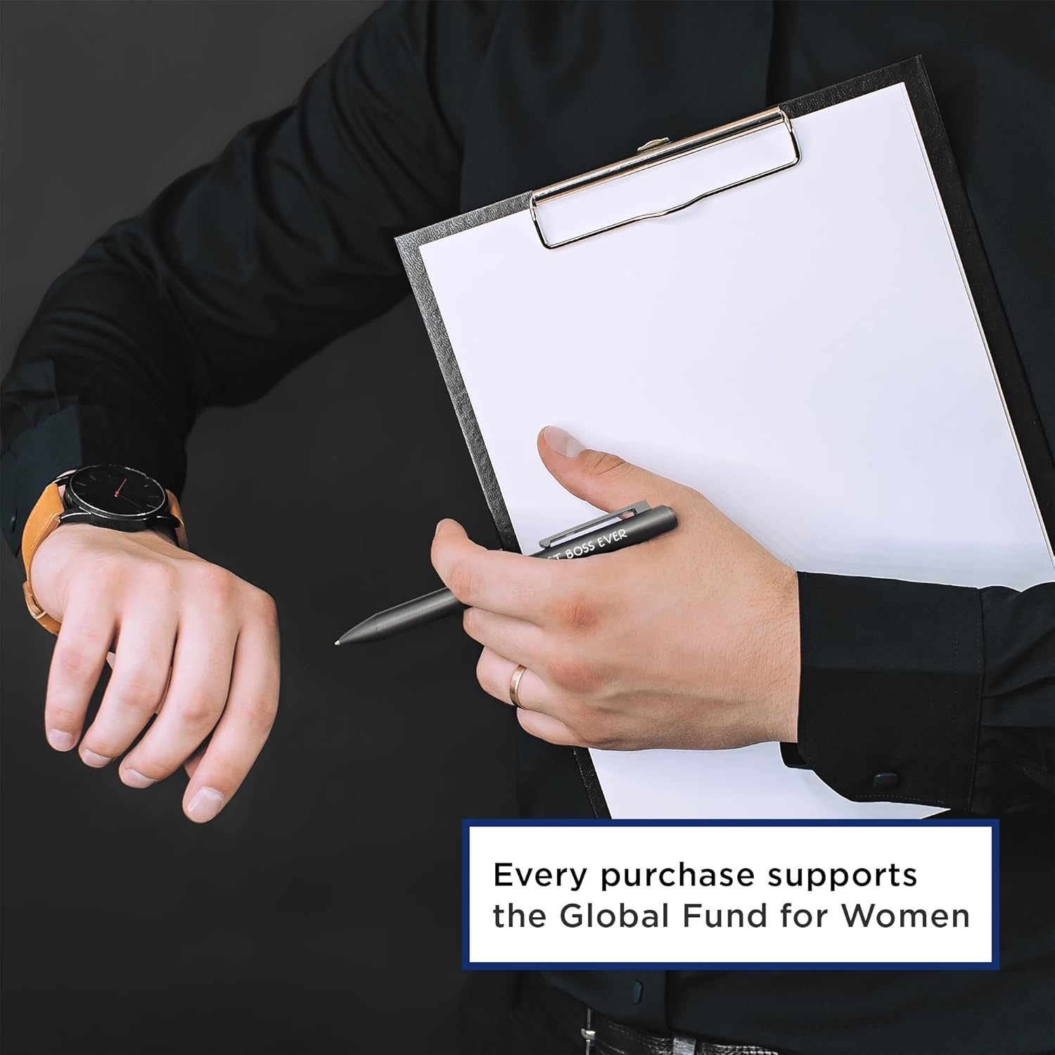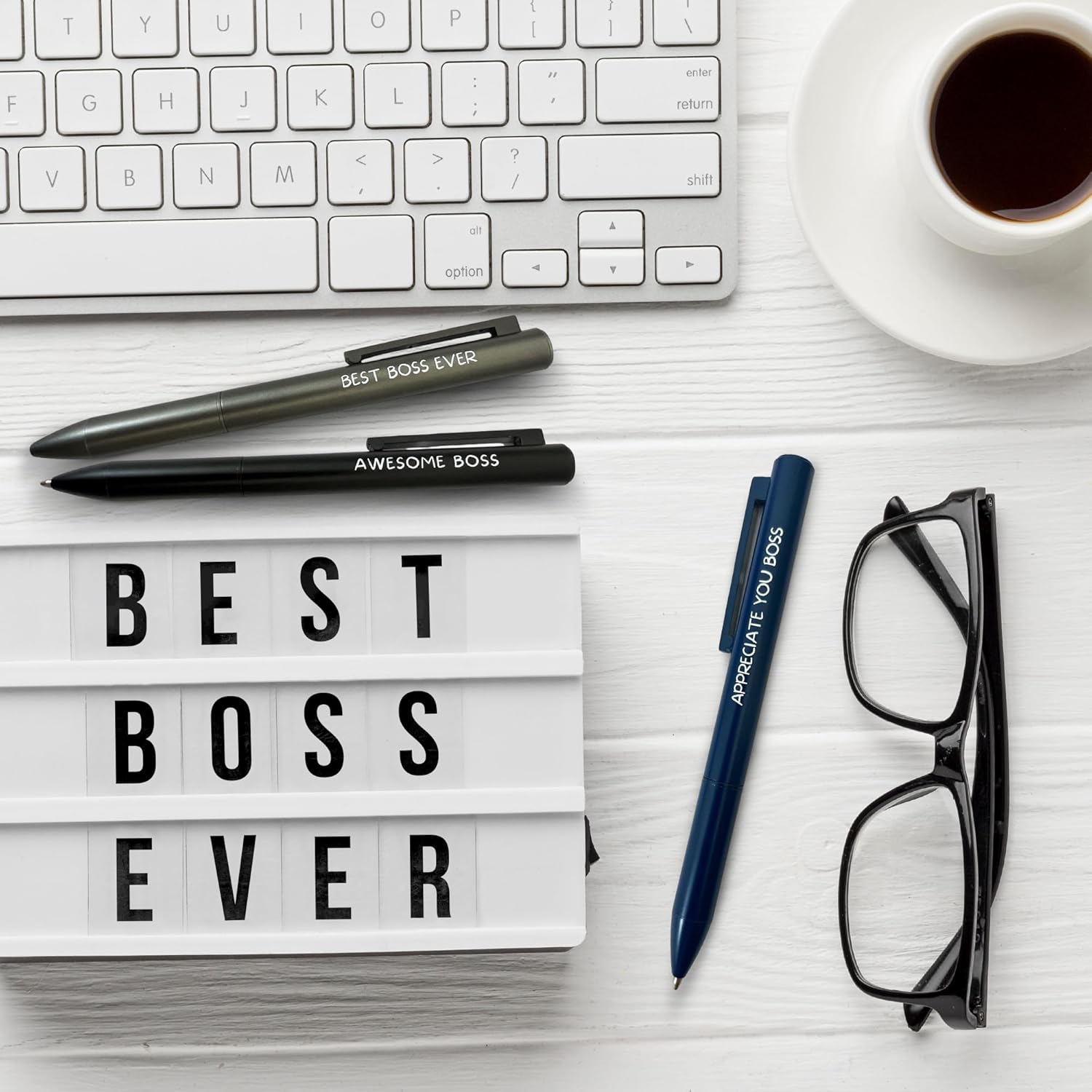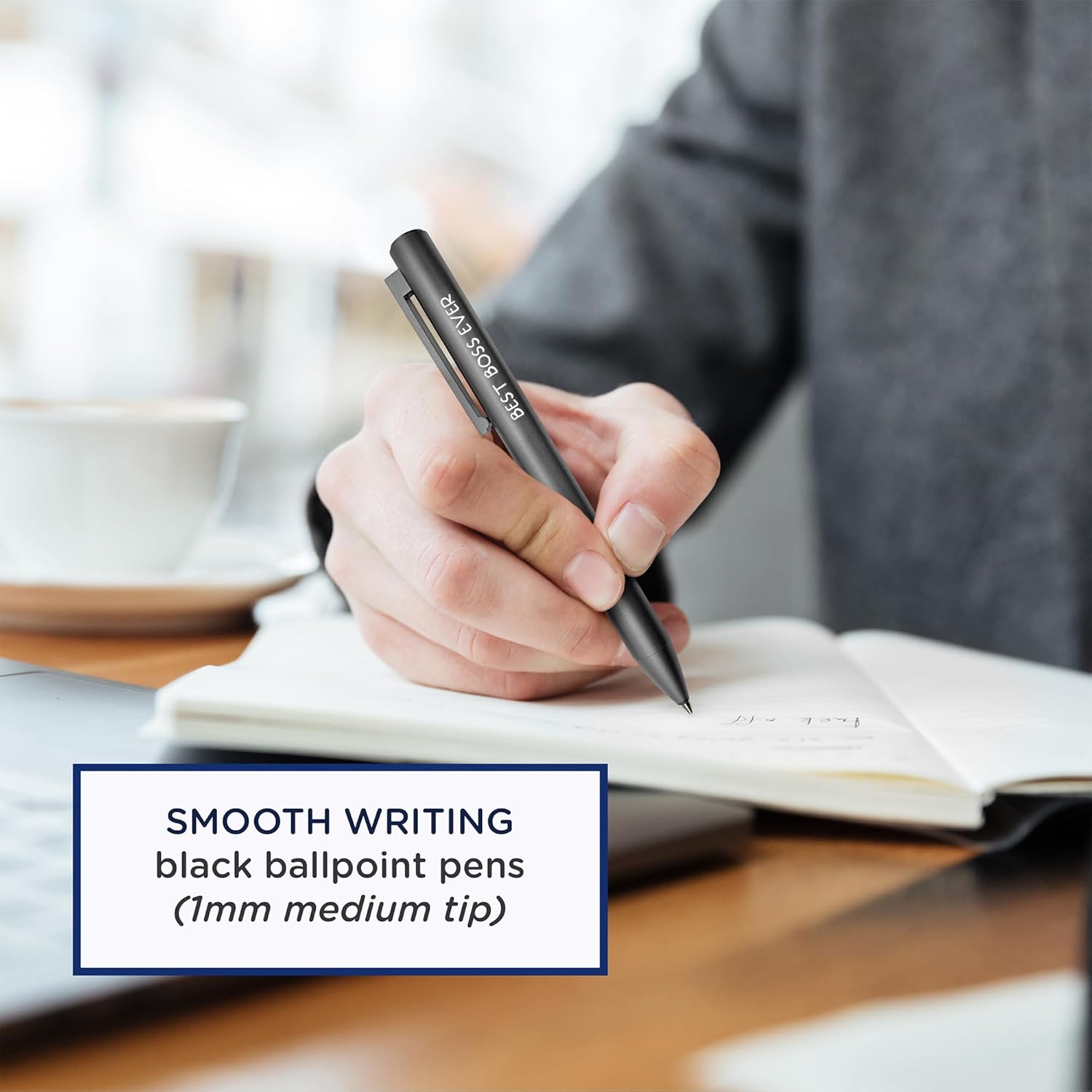 Honor your boss with the Mesmos Midnight Pen Set Series, a collection crafted exclusively for professionals. Each pen is engraved with meaningful messages like ‘Best Boss Ever,’ ‘Awesome Boss,’ and ‘Appreciate You Boss,’ making it the perfect gift for men who lead with style and excellence.