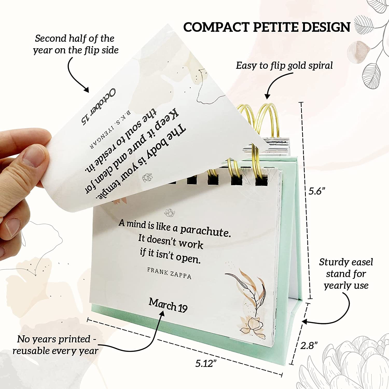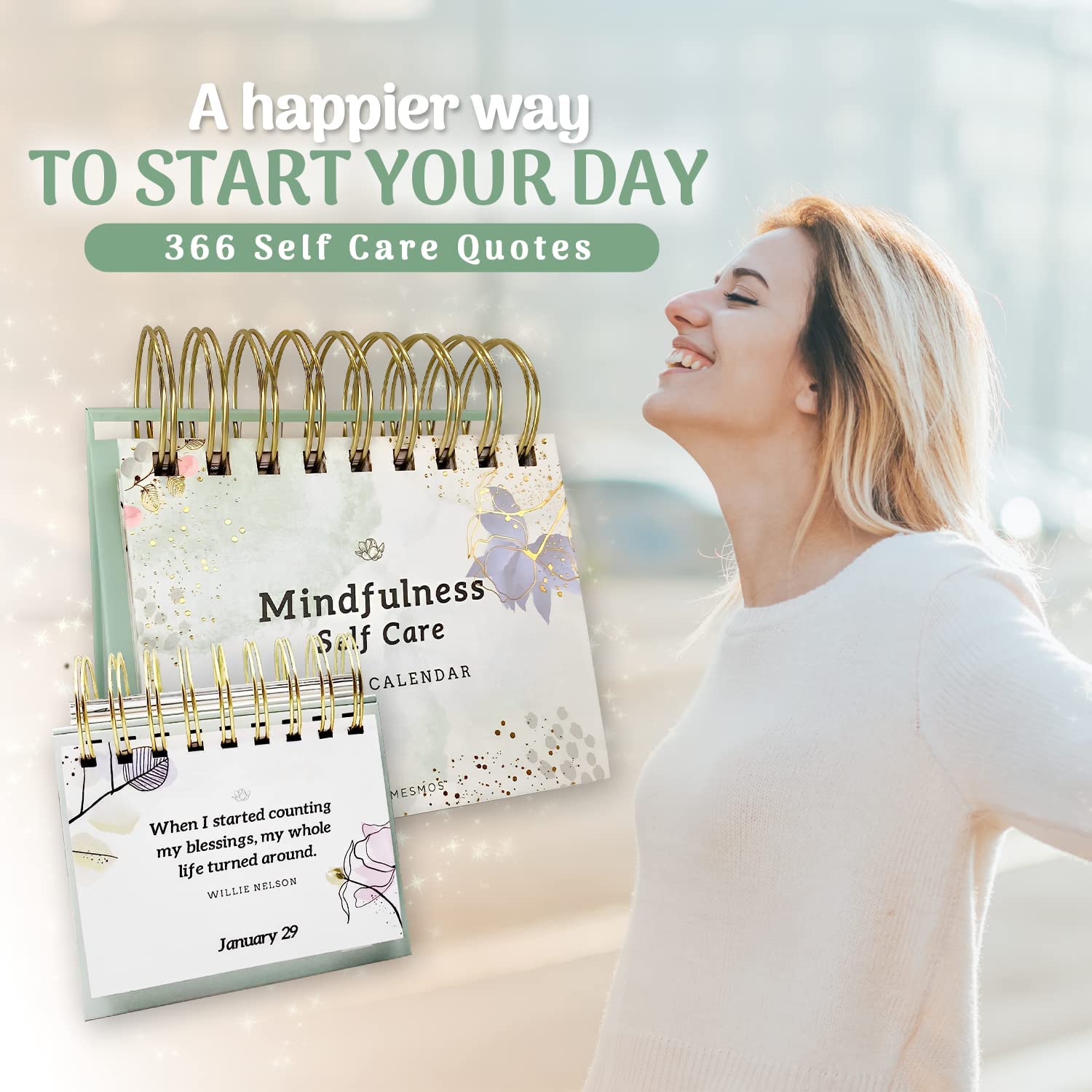 - QUALITY IN THE DETAILS – MESMOS daily affirmations for women calendars are beautifully designed and include 366 front and back mindfulness quotes, sturdy base easel, gift box and a calming watercolor and flower design to promote relaxation and tranquility.